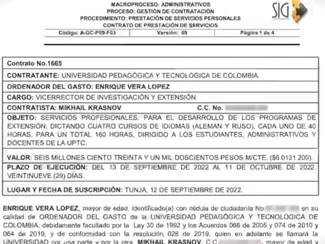 Este es el contrato que sacó a Mikhail Krasnov de la alcaldía de Tunja