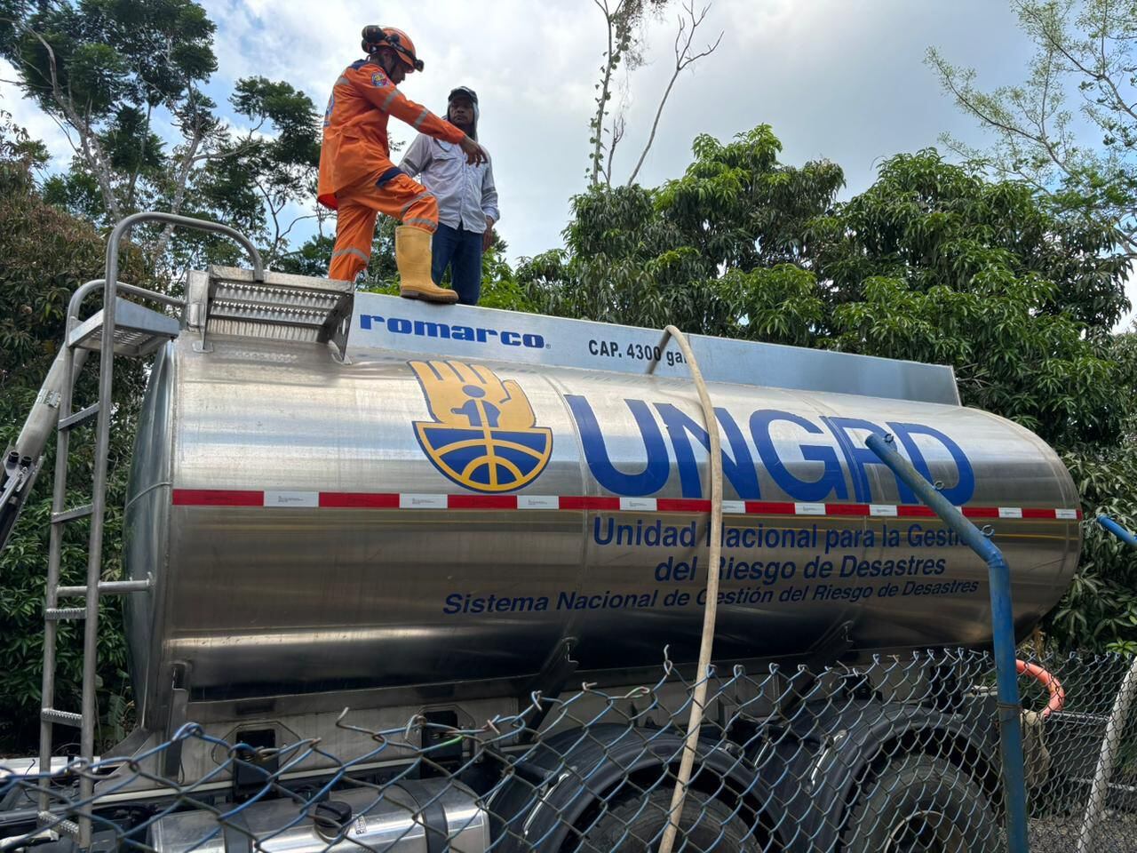 Las labores de abastecimiento están siendo apoyadas por la Defensa Civil Colombiana, cuyos voluntarios transportan el agua hasta comunidades que actualmente no cuentan con acceso directo al servicio.
