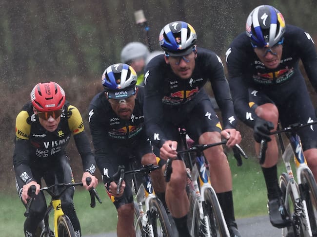 Tres corredores del equipo alemán aprovecharon lo sucedido con Onley y se pusieron en marcha para acompañar a Daniel Martínez. Niceo Denz y Tim y Mick van Dijke arroparon al colombiano en un grupo en el que se les coló Jonas Vingegaard.