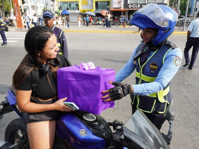 Durante la actividad, usuarias y conductoras de motocicletas, que circulaban por la Avenida Pedro de Heredia, recibieron cascos de protección junto con recomendaciones sobre normas de tránsito, el uso adecuado de los elementos de seguridad y la importancia de conducir de manera responsable.