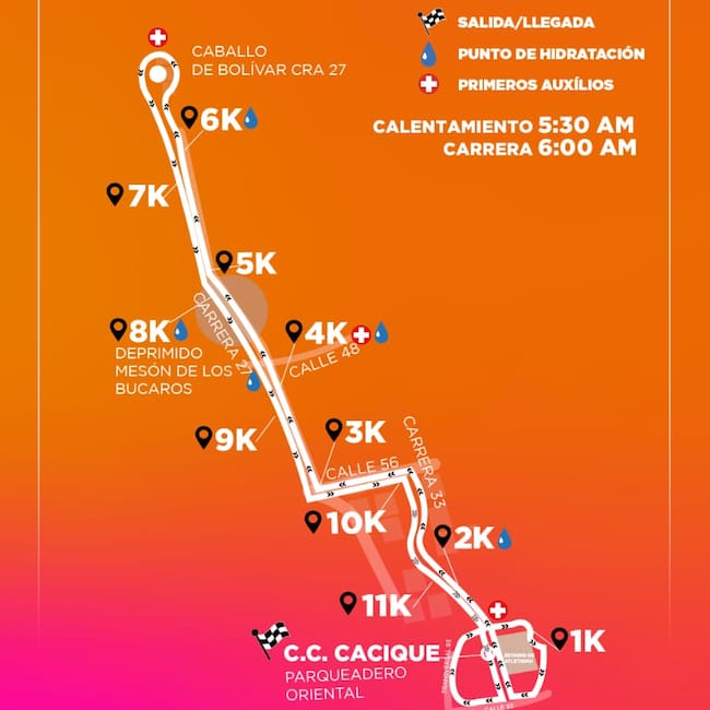 La competencia se efectuará por las vías alrededor del centro comercial Cacique, la Transversal Oriental y Occidental, la calle 93 y la Circunvalar 35.