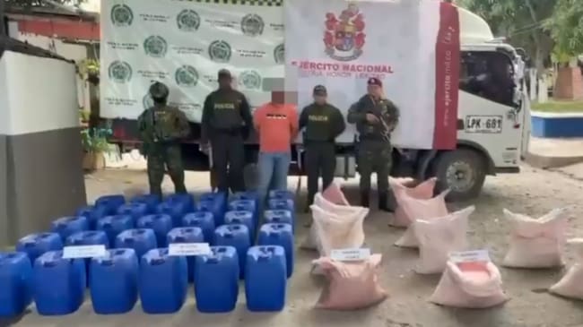 Estos elementos, al parecer, pertenecerían al ‘Frente Darío Ramírez Castro del ELN’ y serían utilizados para la fabricación de artefactos explosivos improvisados. El capturado fue puesto a disposición de la autoridad competente.