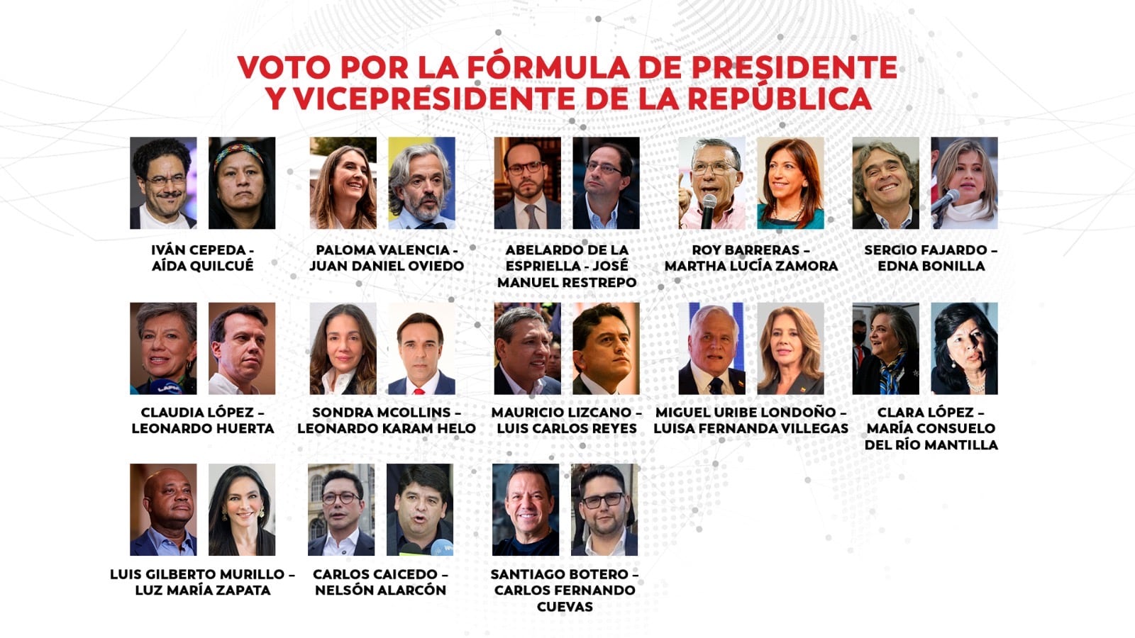 Estos son los candidatos y sus fórmulas vicepresidenciales para la primera vuelta: