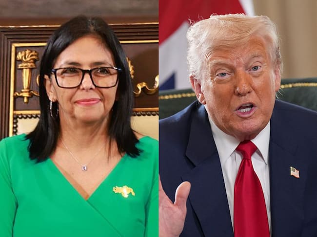 Delcy Rodríguez y Donald Trump. Fotos: (Photo by Venezuelan National Assembly/Anadolu via Getty Images) / (Photo by Andrew Harnik/Getty Images)