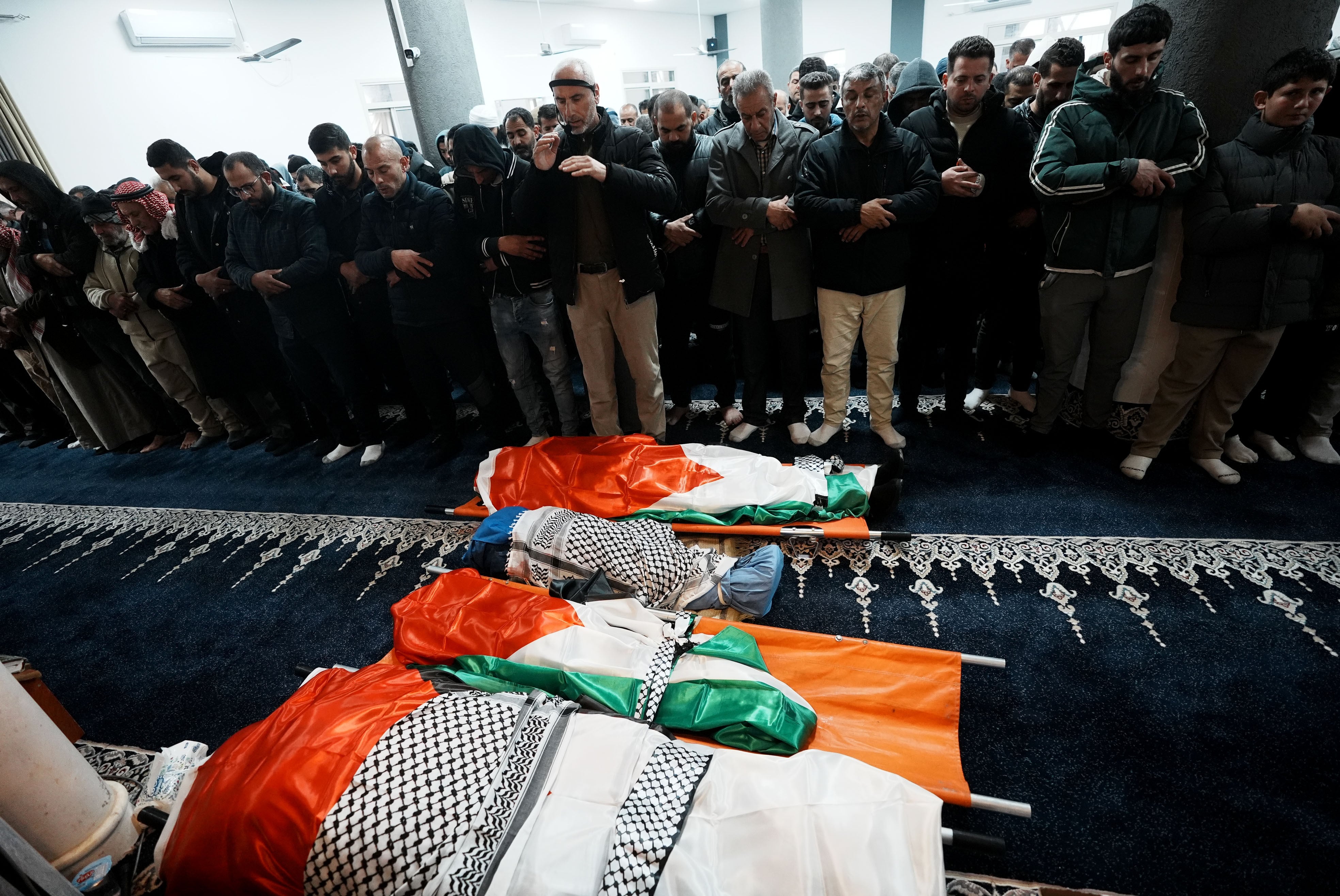 Funeral de la familia palestina que fue asesinada por fuerzas israelíes. La familia estaba conformada por Ali Khalid Sayil Beni Awda (37 años), su esposa Vaad Osman Akil Beni Awda (35 años) y sus hijos Mohammed (5 años) y Osman (7 años). (Foto: Issam Rimawi/Anadolu via Getty Images) / Anadolu