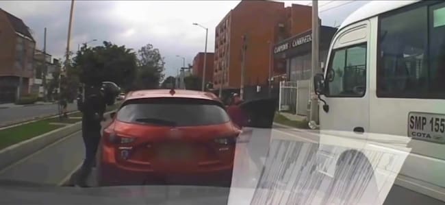Este lunes, 16 marzo, delincuentes atacaron a los integrantes de un carro Mazda rojo mientras esperaban el cambio de semáforo en la calle 116 con 71 b en la localidad de Fontibón.