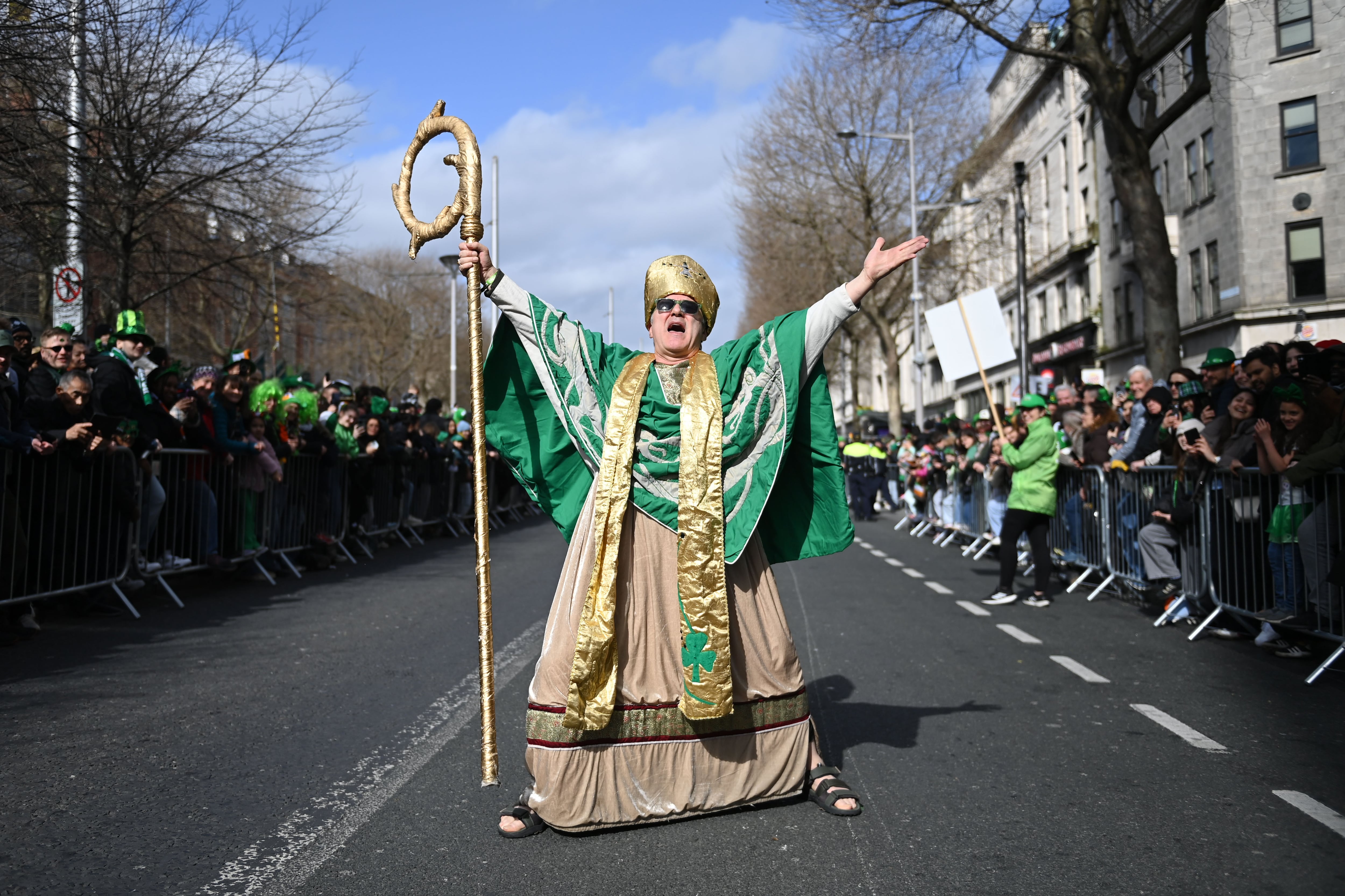 Un actor representando a San Patricio en la celebración del 17 de marzo de 2026 en Dublin, Irlanda. (Cortesí: Charles McQuillan/Getty Images) / Charles McQuillan
