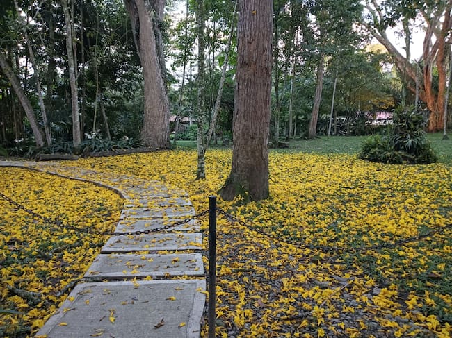 Los hermosos senderos amarillos que dejan los guayacanes florecidos en el Quindío, hacienda El Cabrero. Foto: Adrián Trejos