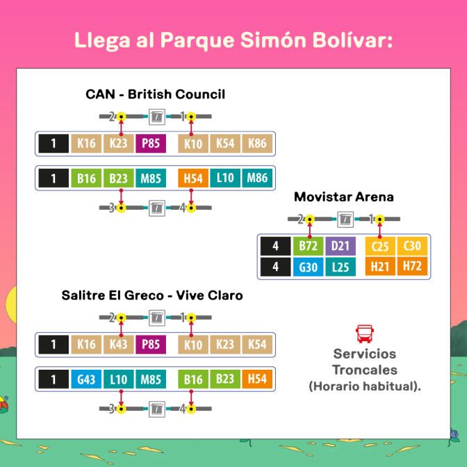 TransMilenio, en horario habitual, tendrá disponibles 14 servicios troncales en estaciones cercanas al Parque Simón Bolívar: