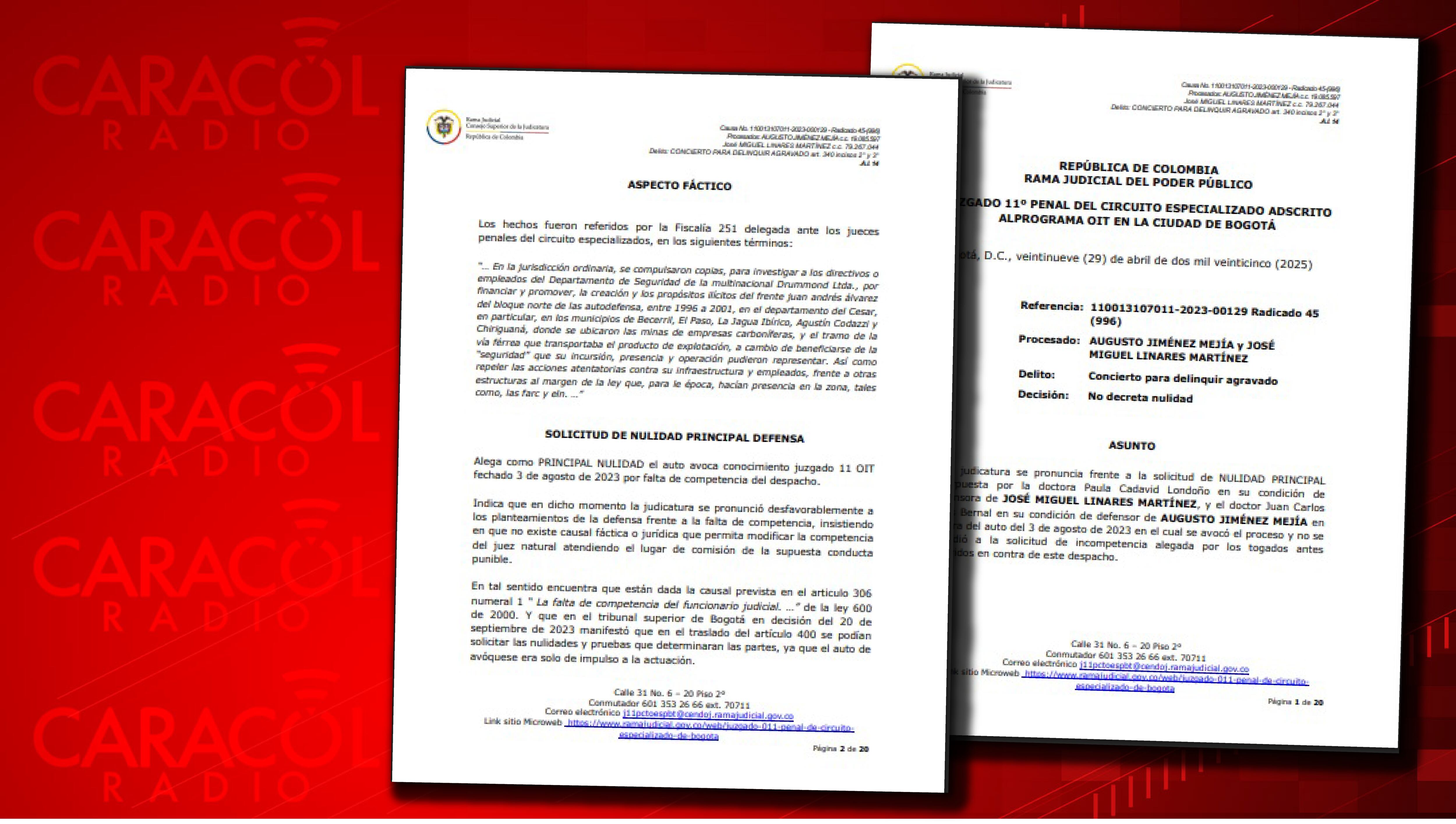 Esta es una de las nulidades presentadas por la defensa de los exdirectivos de la Drummond