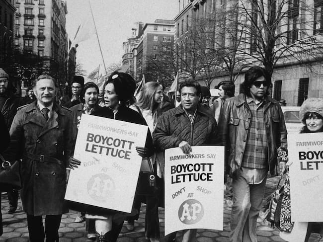 Cesar Chávez durante una manifestación llamando a boicotear la compra de lechuga en la ciudad de Nueva York. (Foto: Bob Parent/Hulton Archive/Getty Images) / Bob Parent