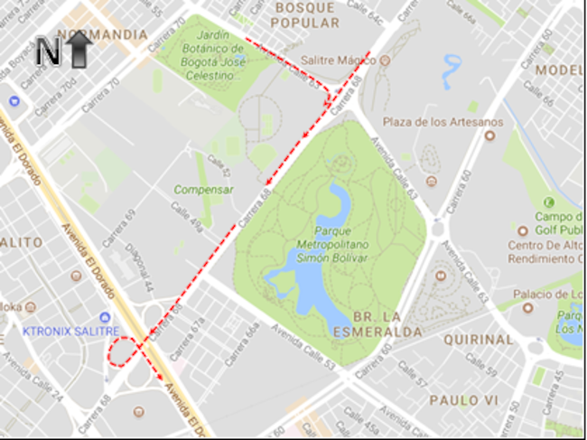 Si va en sentido occidente – oriente por la avenida calle 63, deberán tomar la avenida carrera 68 al norte – calle 67 al oriente – avenida carrera 60 al norte – avenida calle 68 al oriente.