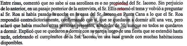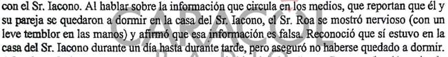 Aquí también surgieron contradicciones. Roa le dijo a los investigadores inicialmente que no se había quedado a dormir en la mansión Iacono: