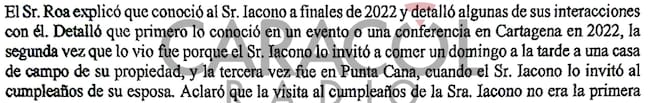El señor Iacono, en su entrevista con El Tiempo, asegura que solo recuerda, y de manera muy poco clara, que lo vio en su mansión de República Dominicana en la celebración de cumpleaños de su esposa: