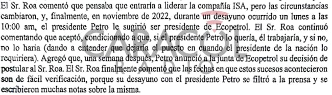 Un documento de 11 páginas que resume el intercambio y las contradicciones de Ricardo Roa es conocido por la junta de Ecopetrol desde el 13 de febrero de 2024. Ustedes lo pueden ver desde este momento en la página de 6AM W.