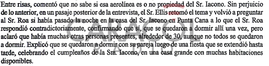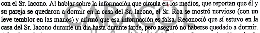 Aquí también surgieron contradicciones. Roa le dijo a los investigadores inicialmente que no se había quedado a dormir en la mansión Iacono: