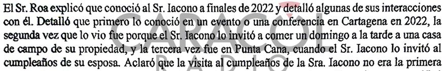 El señor Iacono, en su entrevista con El Tiempo, asegura que solo recuerda, y de manera muy poco clara, que lo vio en su mansión de República Dominicana en la celebración de cumpleaños de su esposa: