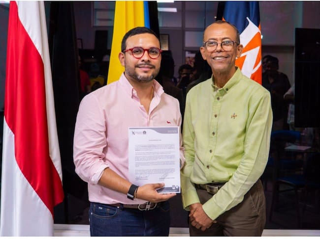 Wilson Quimbayo el día de su posesión como vicerrector de Bienestar Universitario junto al rector encargado, Rafael Castillo Pacheco