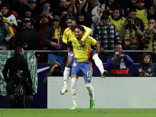 MADRID, SPAIN - MARCH 26: Yaser Asprilla (L) of Colombia celebrates scoring their third goal with teammate Johan Mojica (R) during the friendly match between Romania and Colombia at Civitas Metropolitan Stadium on March 26, 2024 in Madrid, Spain. (Photo by Gonzalo Arroyo Moreno/Getty Images) (Photo by Gonzalo Arroyo Moreno/Getty Images) / Gonzalo Arroyo Moreno