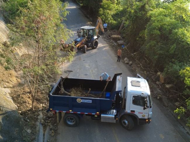 La Gobernación de Santander activó maquinaria amarilla y personal técnico para atender el deslizamiento de tierra en el sector El Tablazo.