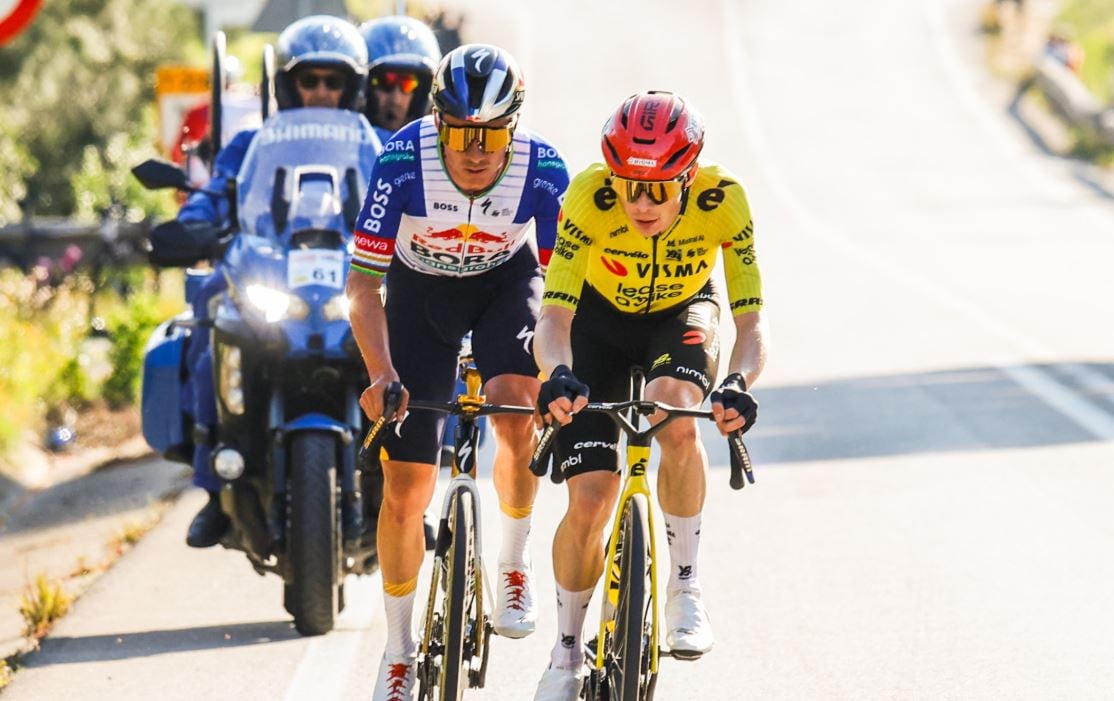 Al atrapar a la fuga, Joao Almeida se quedó atrás y su compañero del equipo en el UAE Team Emirates permaneció con él para ayudarlo a integrarse nuevamente. Caso contrario sucedió con Jonas Vingegaard y Remco Evenepoel, que atacaron y se fueron adelante.