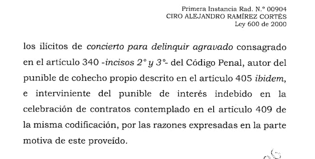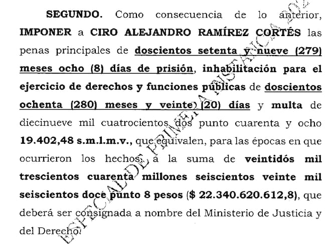 La Corte Suprema de Justicia de Colombia condenó a 23 años de prisión al senador Ciro Ramírez por su presunta participación en el caso Marionetas 2.0, una red de corrupción que habría direccionado contratos públicos a cambio de sobornos.