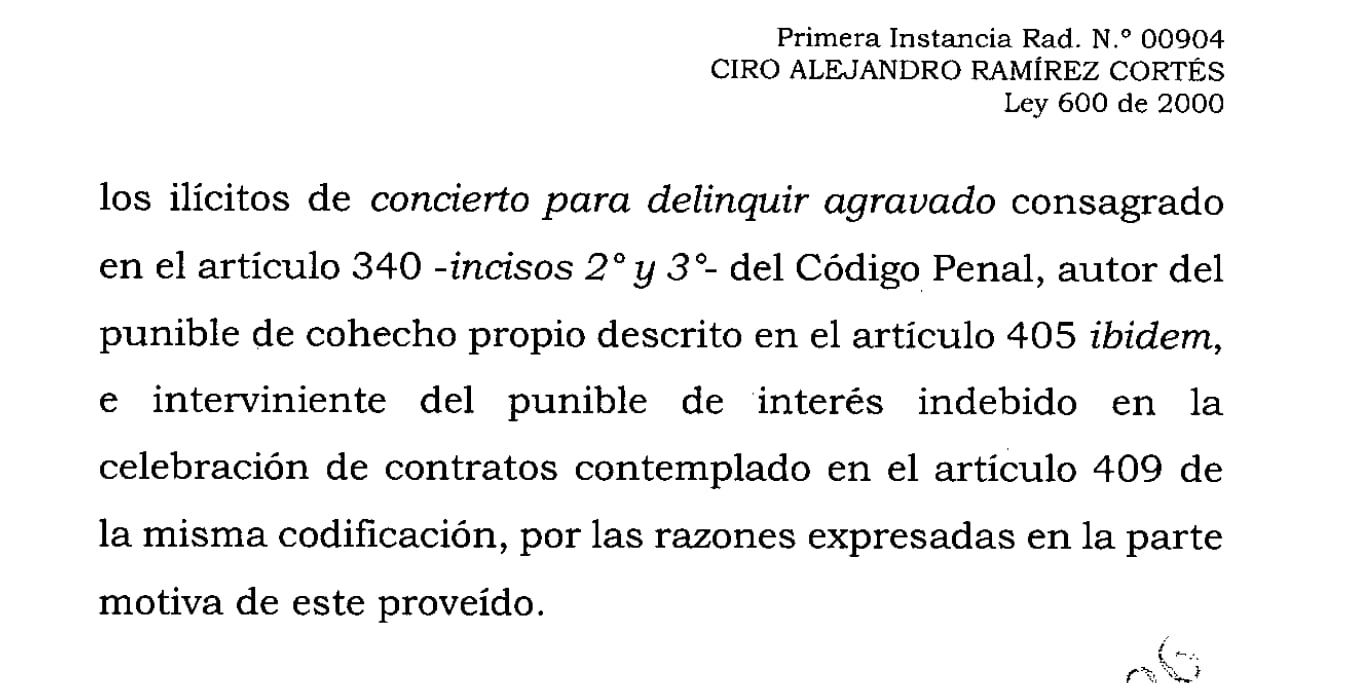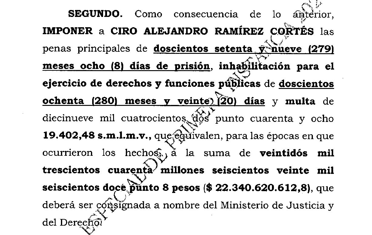 La Corte Suprema de Justicia de Colombia condenó a 23 años de prisión al senador Ciro Ramírez por su presunta participación en el caso Marionetas 2.0, una red de corrupción que habría direccionado contratos públicos a cambio de sobornos.