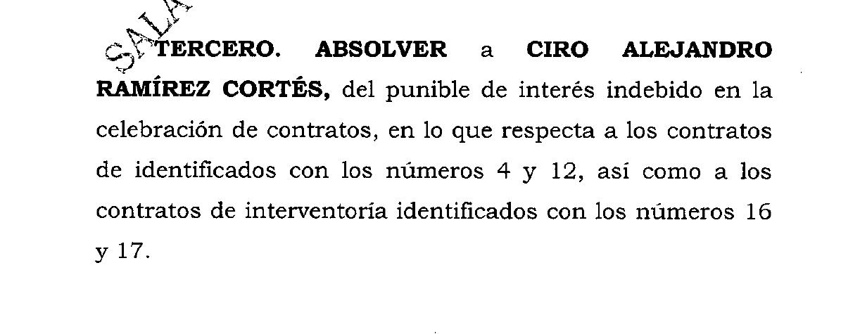 Al explicar su reacción, Ciro Ramírez insistió en que durante el proceso judicial no se valoraron elementos fundamentales de su defensa. «...No tuve en cuenta los testimonios de todas las personas vinculadas a este proceso...», afirmó, al detallar que alcaldes, gobernadores y otros actores mencionados en el expediente declararon no conocerlo, ni haber tenido relación con él en los convenios investigados.