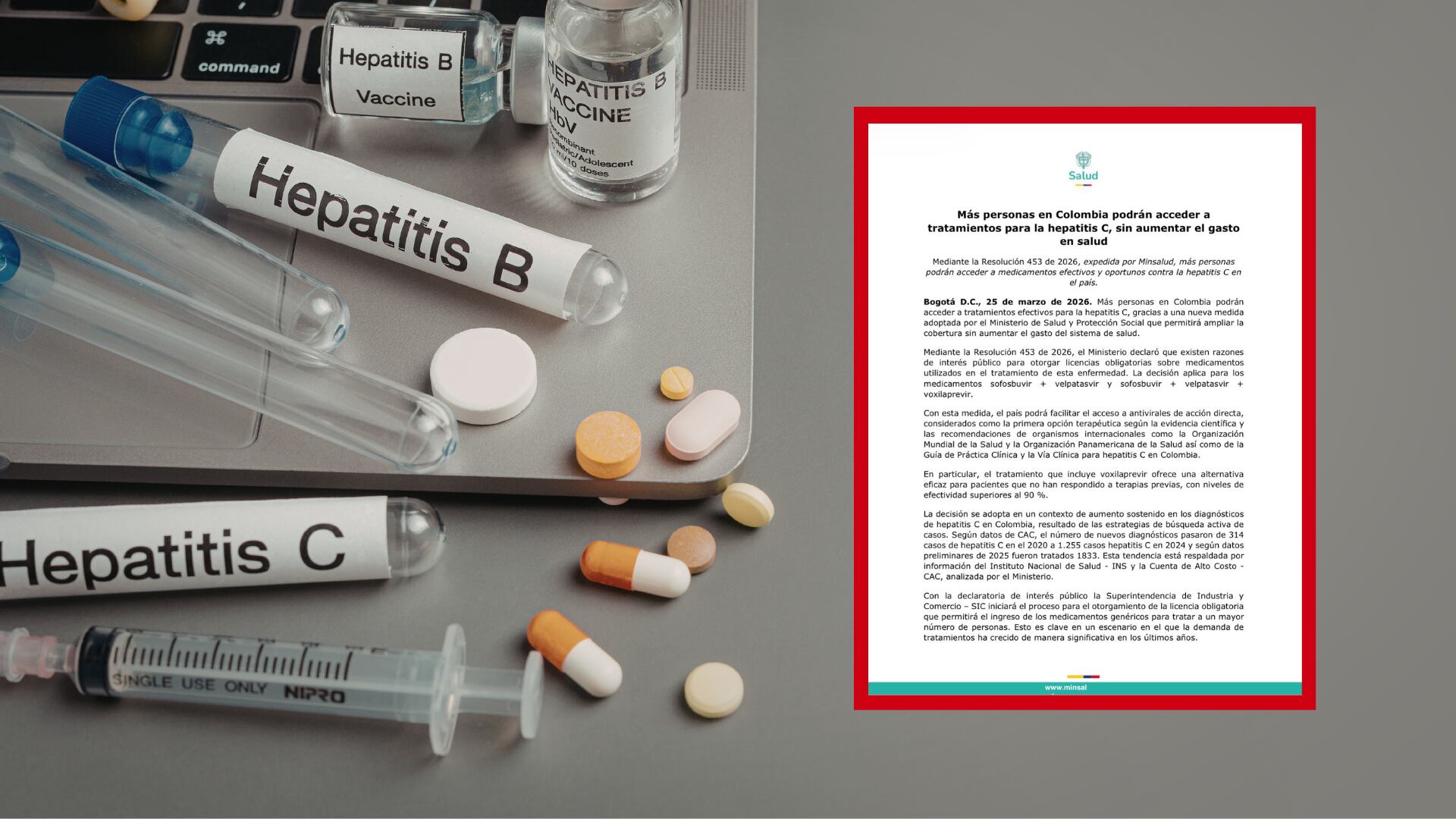 La medida, se da a partir de la Resolución 453 de 2026, la cual busca garantizar el acceso a tratamientos de alta eficacia con alternativas accesibles, y aplica a medicamentos basados en sofosbuvir + velpatasvir y la combinación con voxilaprevir, medicamentos antivirales que se usan específicamente para el tratamiento de la enfermedad.