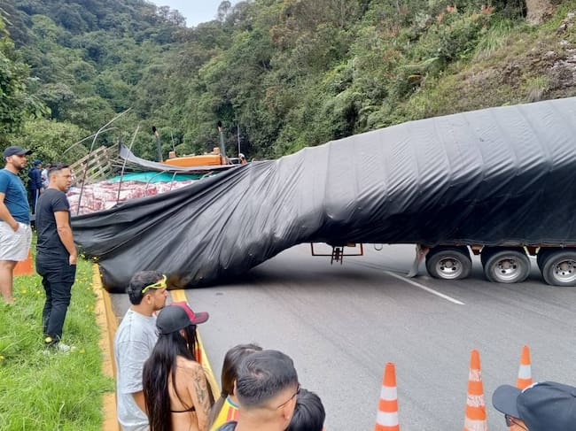 Paso restringido en la vía hacia el Alto de La Línea por el volcamiento de una tractomula