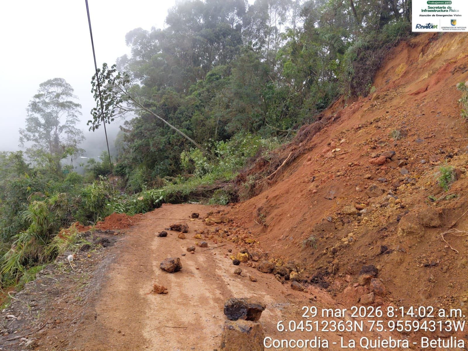 La Gobernación de Antioquia ordenó el cierre total de la vía Concordia – Betulia a la altura del kilómetro 10+100, debido a una falla geológica activa que representa un alto riesgo para quienes transitan por este corredor del Suroeste antioqueño.
