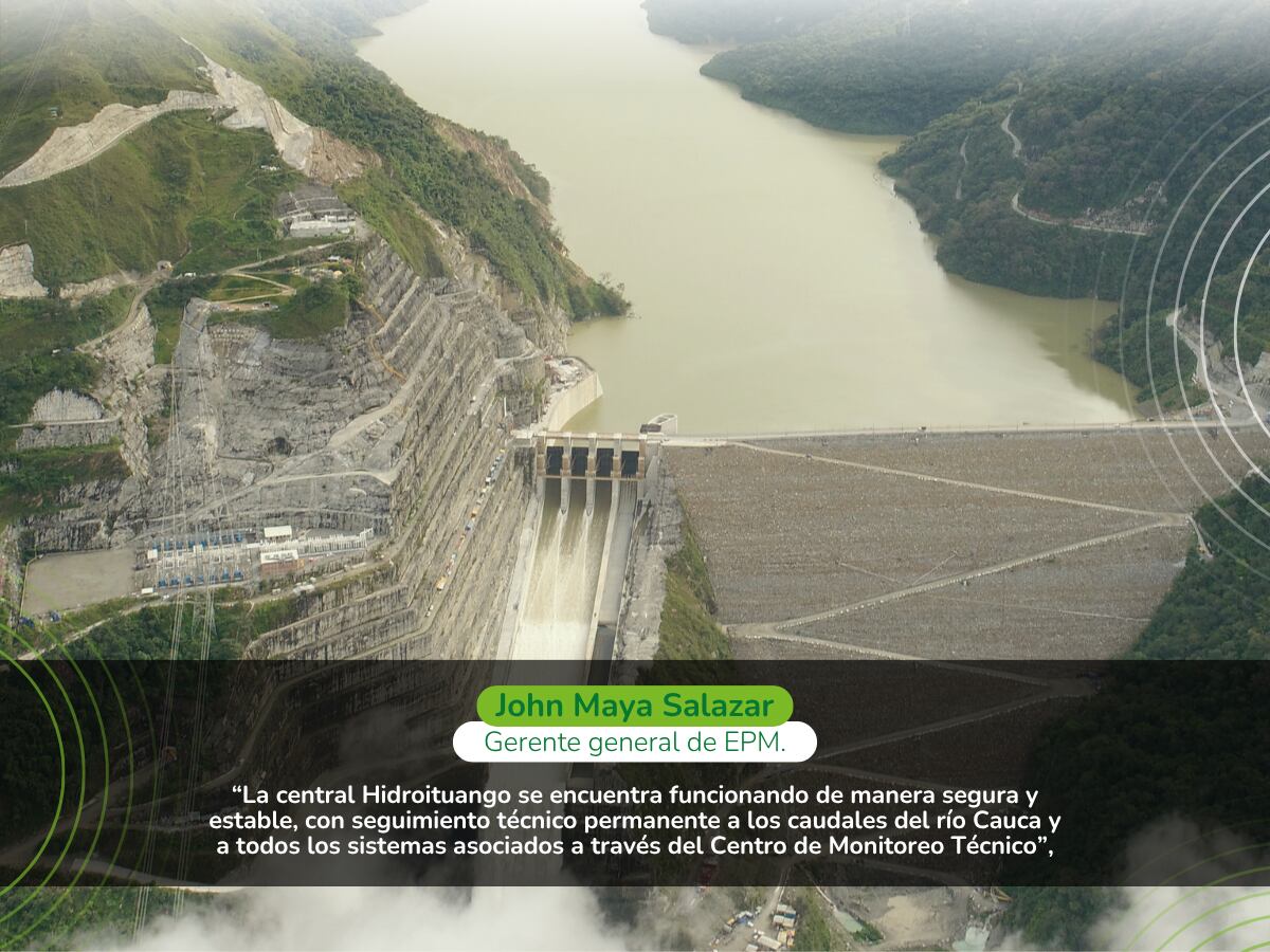 Adicionalmente, dentro de la misiva se recogen las declaraciones de Jhon Maya Salazar, gerente general de EPM, en donde este puntualiza que la central “se encuentra funcionando de manera segura y estable, con seguimiento técnico permanente a los caudales del río Cauca y a todos los sistemas asociados a través del Centro de Monitoreo Técnico”.