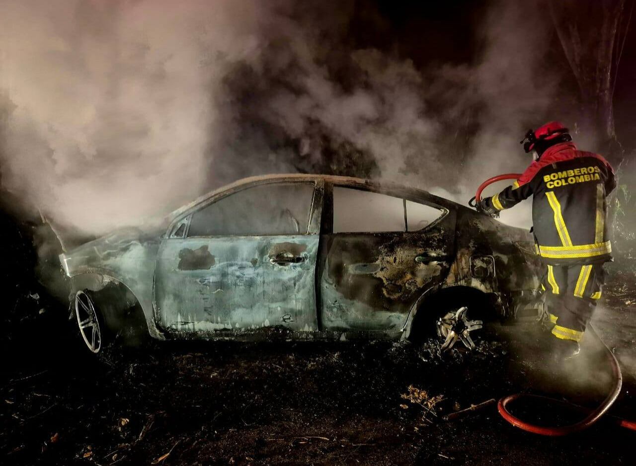 “Al arribo de la móvil 02, se encontró un vehículo que, según versiones preliminares, habría colisionado contra un árbol, lo que generó un incendio vehicular que ya se encontraba en fase terminal”, informó el Cuerpo de Voluntarios de Bomberos de Armero Guayabal.