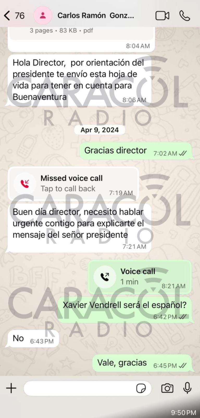 Luis Carlos Reyes respondió al día siguiente a las 7 y 2 de la mañana: “Gracias, director”. Transcurrieron apenas 17 minutos cuando Carlos Ramón González lo llamó.