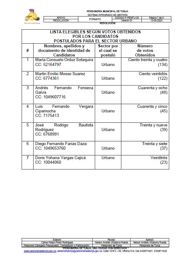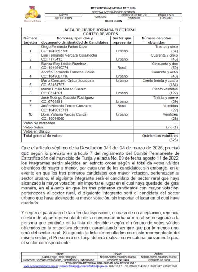 Personería de Tunja corrige resolución sobre elección de representantes de estratificación