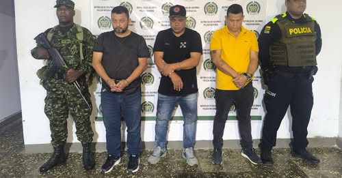 Los otros dos detenidos fueron identificados como Duber Aventado Herrera y Raúl Ramón Mendoza, ambos con antecedentes por porte ilegal de armas y concierto para delinquir. Durante la operación también fueron incautados tres proveedores, munición de diferentes calibres, equipos móviles y una camioneta RAM usada para la comisión del delito.
