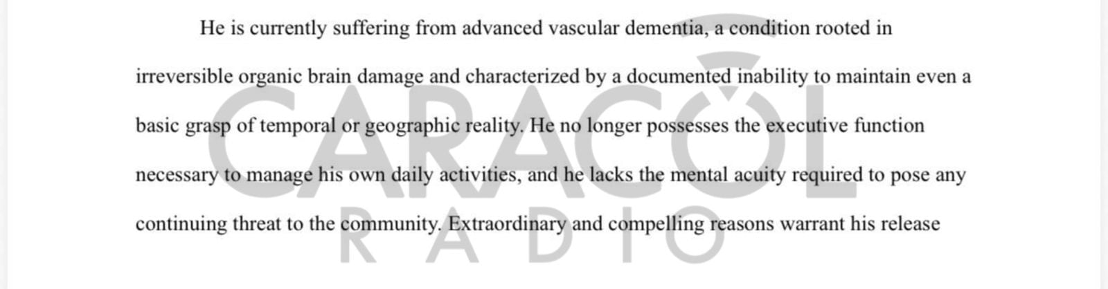 Hace un tiempo los colegas de La FM habían revelado que había pedido su excarcelación por razones de salud. Lo nuevo es que tenemos los documentos que los abogados han presentado para acreditar que perdió la razón como consecuencia de varios accidentes cerebro vasculares.