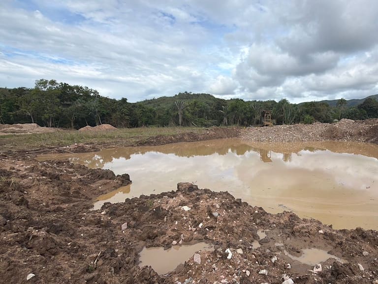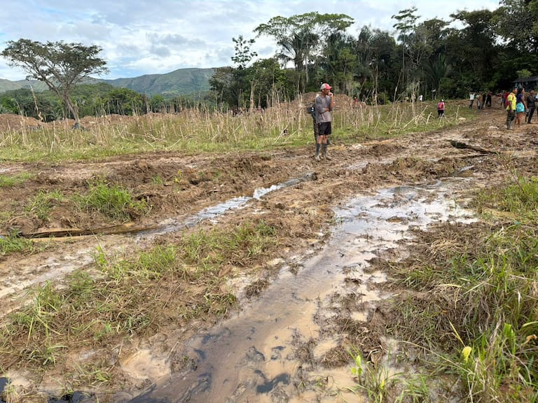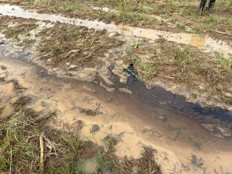 Desde tierra, la escena era aún más impactante. Donde antes hubo vegetación, ahora quedan piscinas artificiales de agua café, canales oscuros con residuos de combustible y extensiones completas convertidas en desierto de piedras y sedimento.