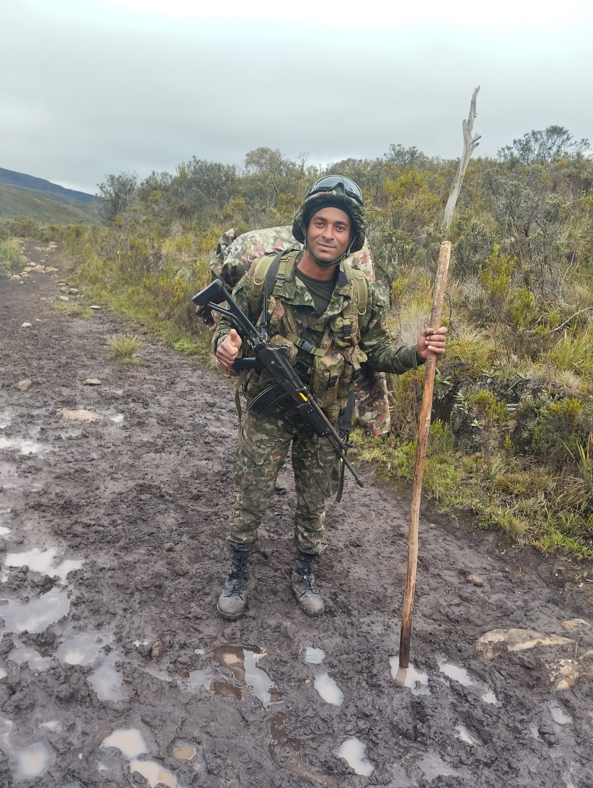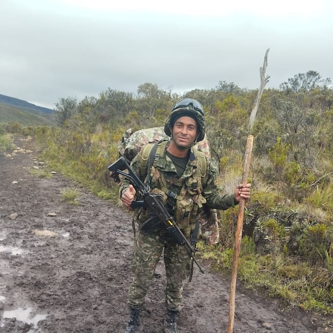 La historia del soldado también está marcada por su experiencia en terreno. A comienzos de 2025 participó en la atención de incendios forestales en los cerros orientales de Bogotá, luego de haberse formado en Atención y Prevención de Desastres. Posteriormente, fue destinado al Batallón de Alta Montaña #1.