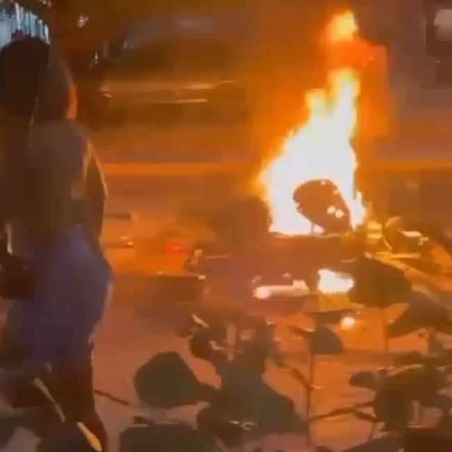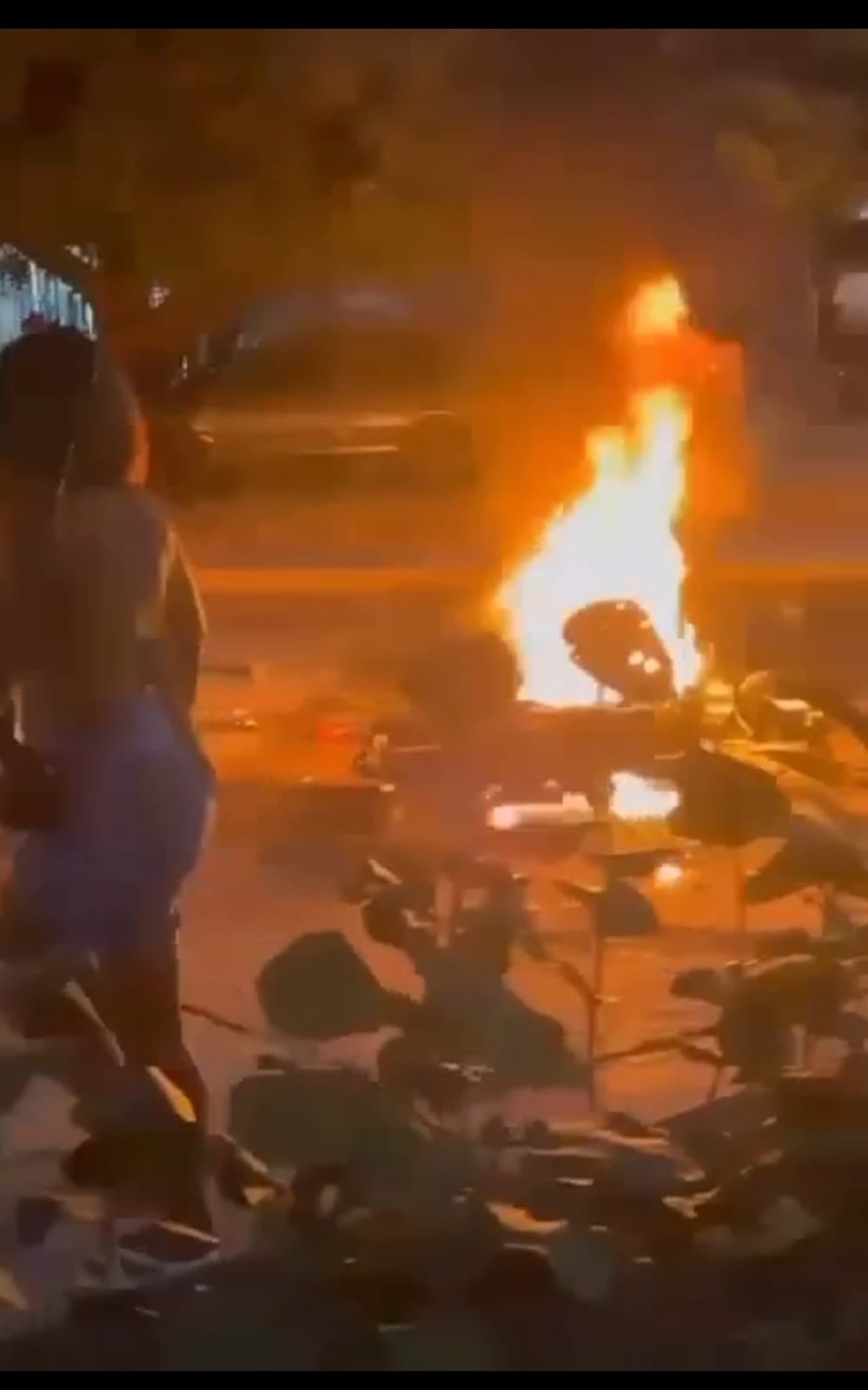 En medio de los disturbios, una motocicleta de la Policía fue incinerada, mientras se registraban alteraciones del orden público que generaron preocupación entre los residentes del sector.