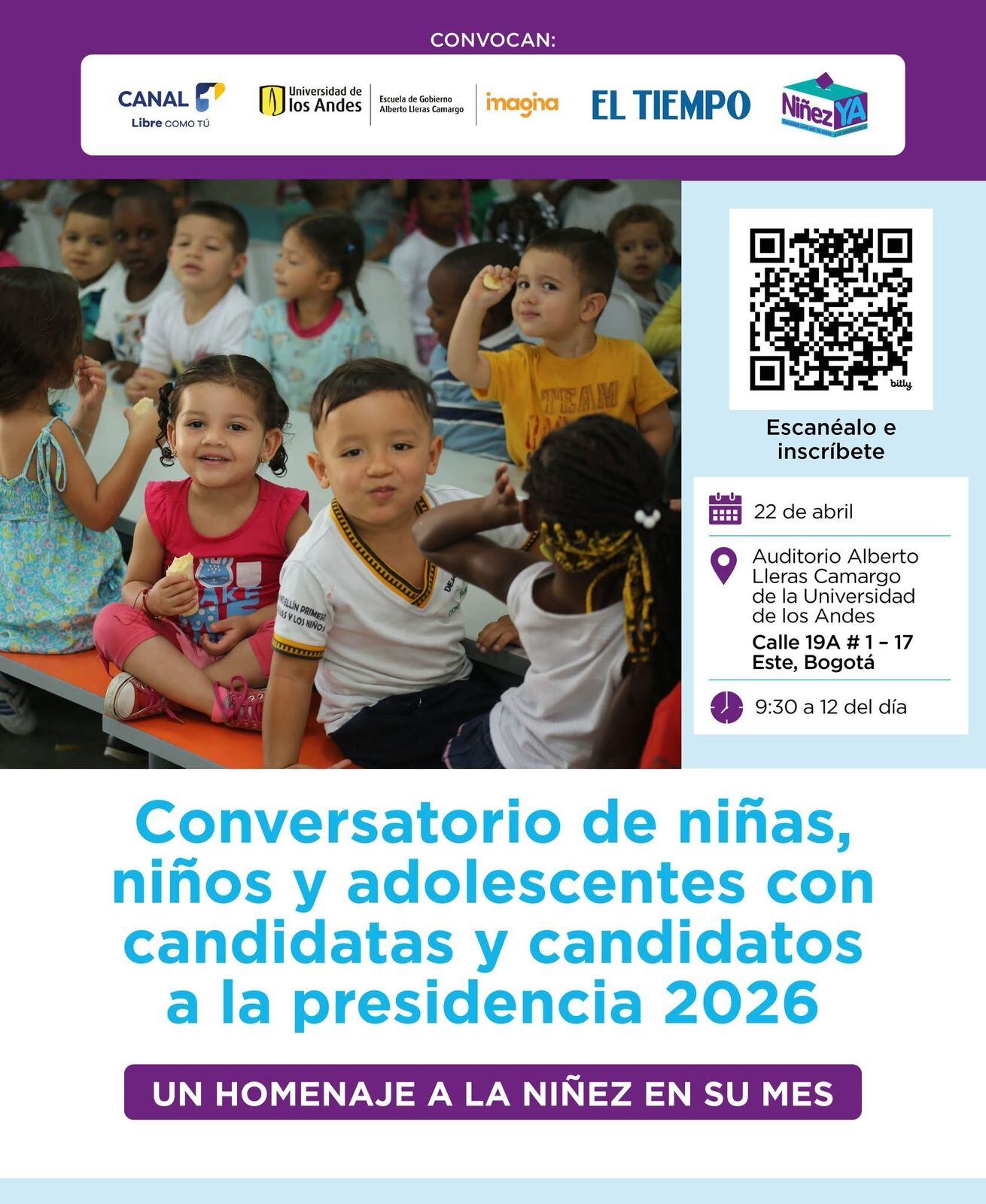 NiñezYA organiza este encuentro que se realizará en el auditorio Alberto Lleras Camargo de la Universidad de los Andes.