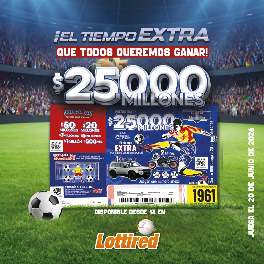 El sorteo extraordinario de la Lotería de Medellín tendrá un premio mayor de $25.000 millones y se realizará el 20 de junio de 2026.
