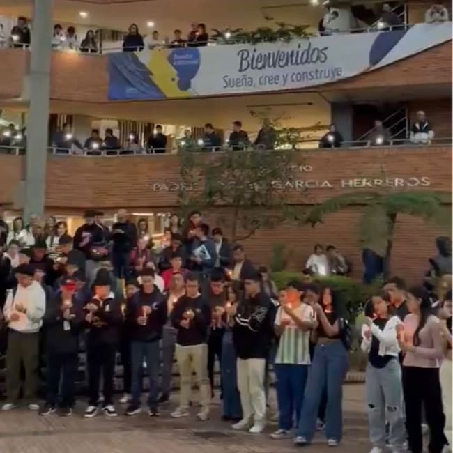 En horas de la noche de este martes 21 de abril, estudiantes de la Universidad Minuto de Dios marcharon sobre toda la calle 80 con carrera 73A, como forma para expresar su rechazo por el asesinato de su compañero Fredy Santiago en medio de un robo en una estación de Transmilenio.