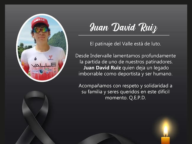 “Es una noche triste para Cali, para el deporte caleño. Lamentable y triste la noticia del fallecimiento de nuestro deportista Juan David Ruiz Ramírez, patinador caleño destacado en los Juegos Departamentales 2022 en la categoría sub 13 y una promesa para el deporte caleño, colombiano y mundial”.