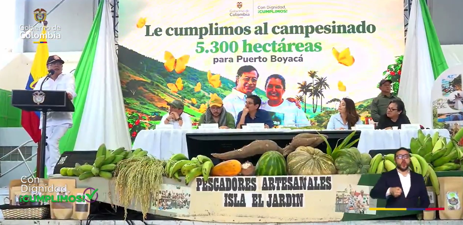 En el marco de la visita del presidente Gustavo Petro a Puerto Boyacá, el Gobierno nacional realizará la entrega de tierras a 510 familias campesinas como parte de su política de reforma agraria.