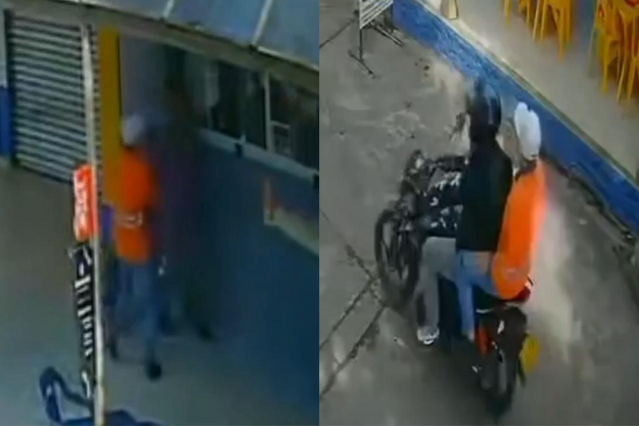 En imágenes de cámaras de seguridad se observa el momento en el que el delincuente le dispara al trabajador y huye en la motocicleta junto a su cómplice, al parecer con un botín de 7 millones de pesos. Por su parte, la víctima quedó tendida sobre el andén y murió minutos después por la gravedad de las heridas.