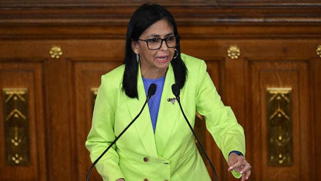 Delcy Rodríguez recorrió una alfombra roja dispuesta en el patio del Palacio Federal Legislativo para ingresar al salón protocolar del Legislativo, donde se espera que enumere los datos más relevantes del casi primer año de Maduro