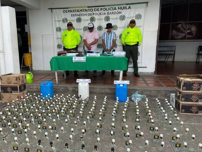 En el allanamiento fueron capturadas 2 personas, hallándoles armas de fuego, alcohol etílico, botellas para empacado y estampillas.