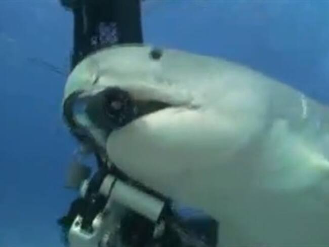 George Schellenger, productor y camarógrafo del portal This is your ocean (Este es tu Océano) se llevó una sorpresa cuando un ejemplar de tiburón tigre se llevó su cámara