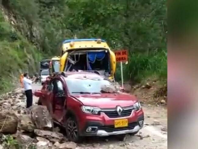 Un grupo de conductores que se encontraban en una larga fila fueron sorprendidos por un derrumbe de tierra y piedras.